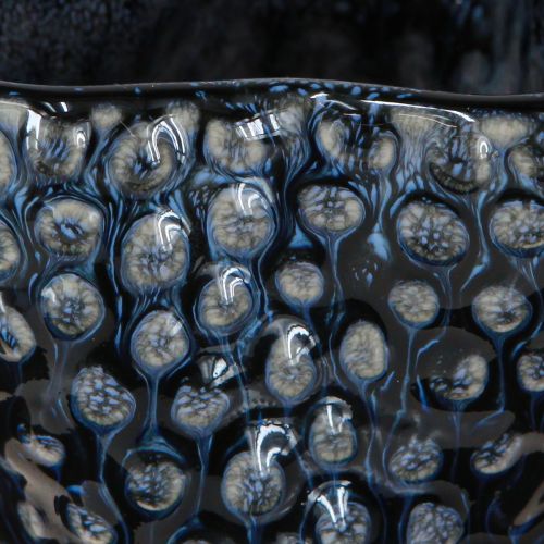 Die Farbe Blau steht oft für Ruhe, Vertrauen und Weite und wird in der Dekoration dazu genutzt, ein Gefühl der Gelassenheit zu schaffen. Beige hingegen bringt Wärme und Behaglichkeit und verbindet sich perfekt mit dem dunklen Blau dieser Vase, um ein harmonisches und einladendes Ambiente zu schaffen.