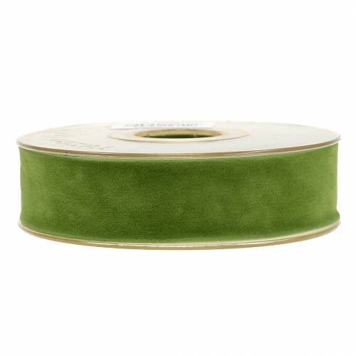 Das Dekoband in Grün besteht aus weichem Samt und befindet sich auf einer Kunststoffspule. Die Gesamtlänge des Bandes beträgt circa 7 Meter und die Breite in etwa 25 Millimeter.