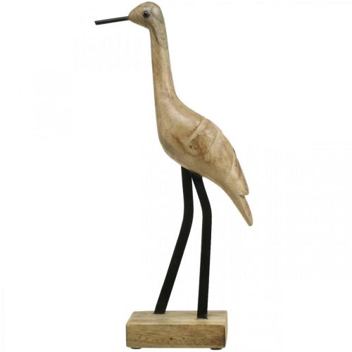 Watvogel aus Holz, Kranich zum Stellen, Dekovogel Naturfarben, Schwarz H40cm