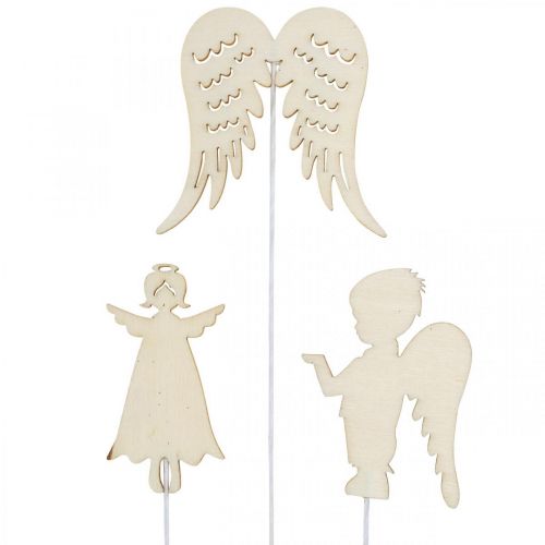 Adventstecker Engel, Flügel zum Stecken, Holzengel, Weihnachtsdeko Natur, Weiß, Goldglitter 18 St