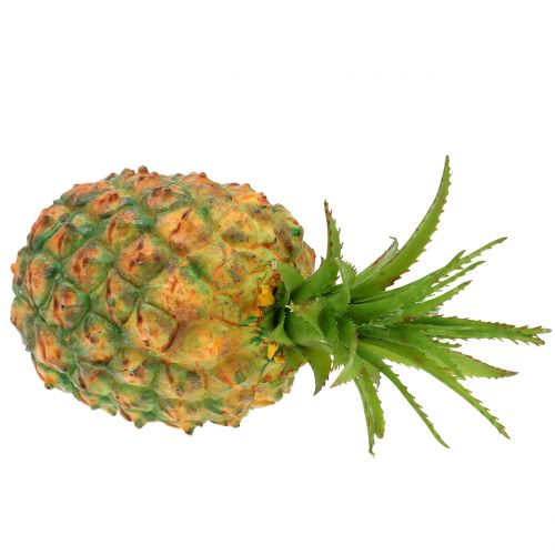 Die künstliche Mini Ananas besteht komplett aus Kunststoff. Ihre Größe beträgt etwa 20 Zentimeter, ihre Durchmesser etwa 10 Zentimeter.
