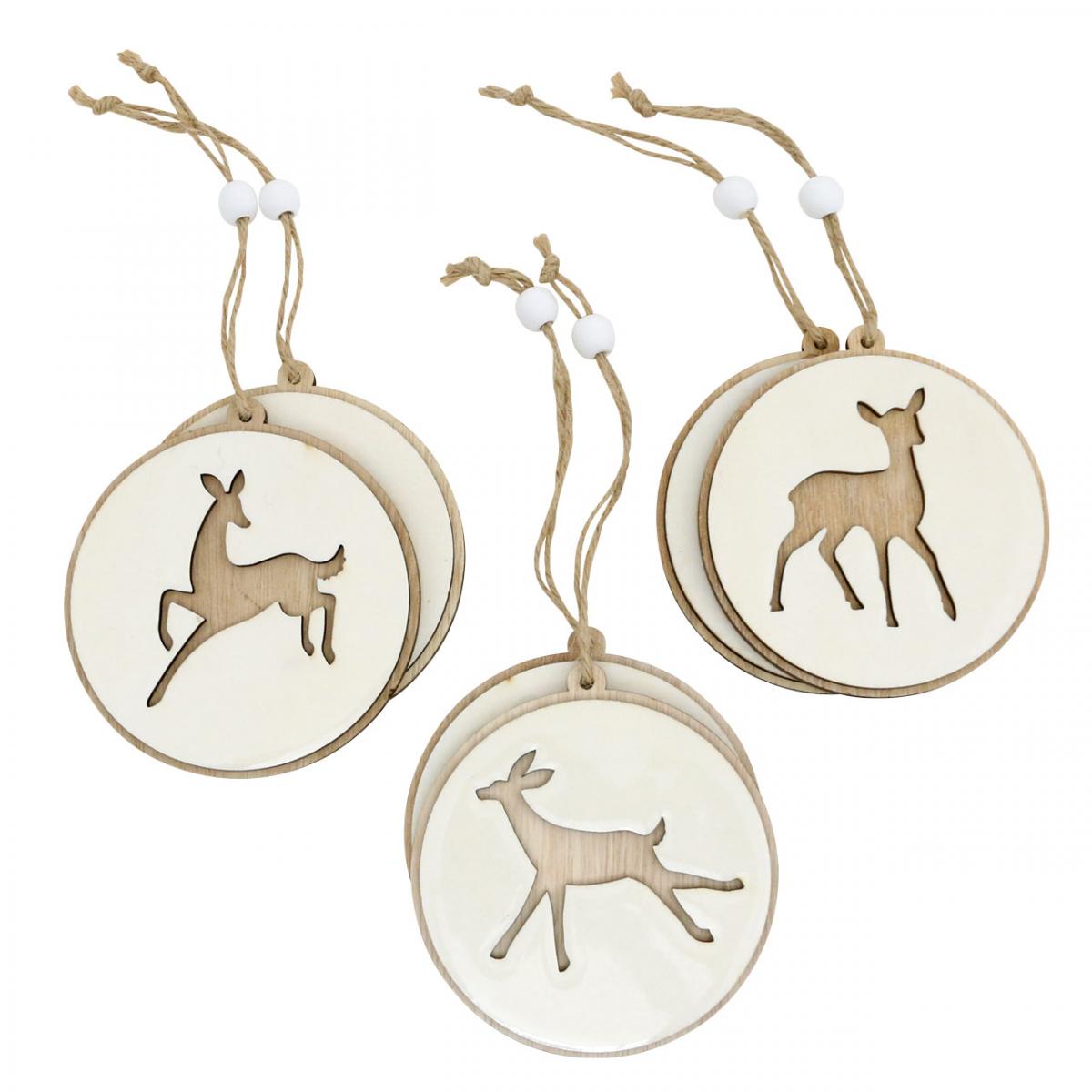 Produktname: Anhänger mit Rehen, Deko-Medaillion, Holzdeko, Advent Ø9,5cm 6St