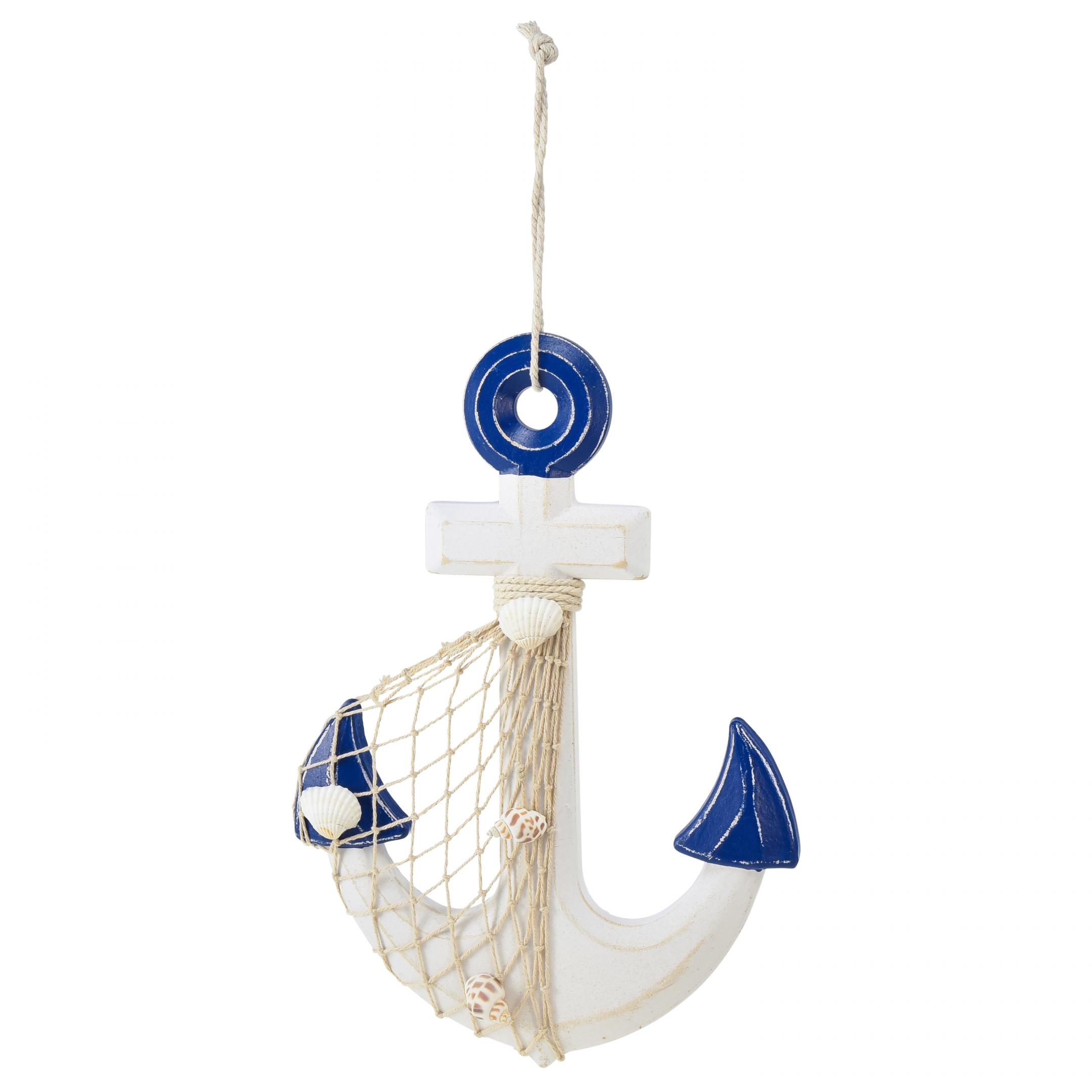 Anker Deko Holz Dekohänger Weiß Blau Natur 32x2,5x22cm
