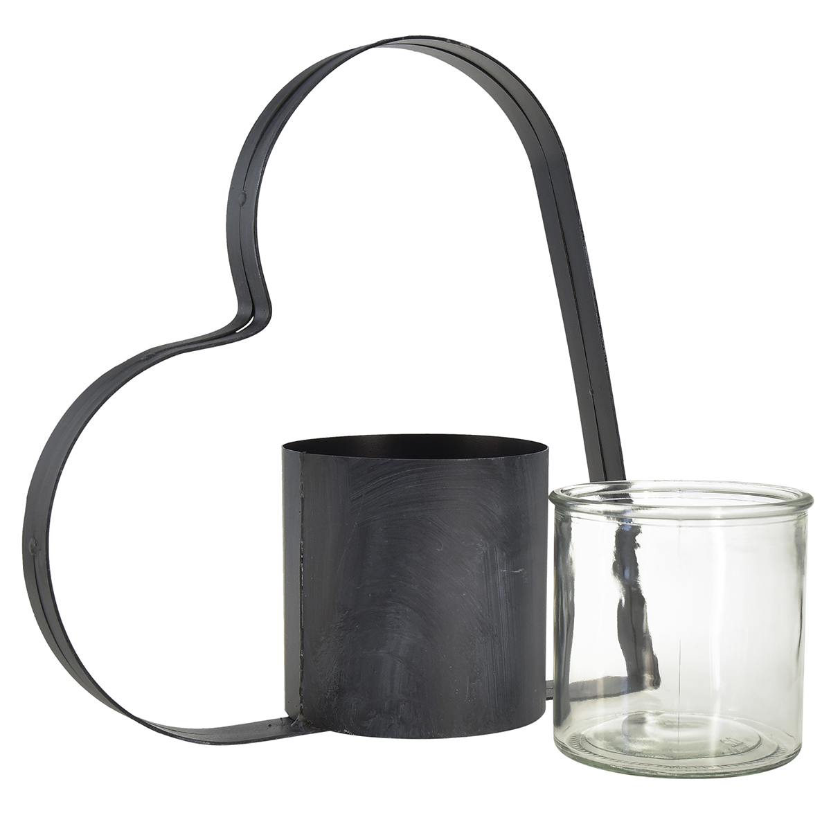 Antik-graue Metallhalterung mit Herzform und Glasbehälter – 30 cm Deko für romantische Atmosphäre 2St