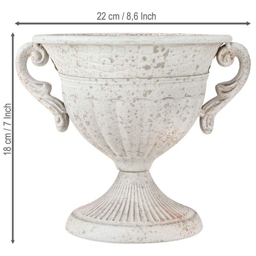 Antik Pokal mit Henkeln Metall Deko Vintage Grau Weiß H18cm