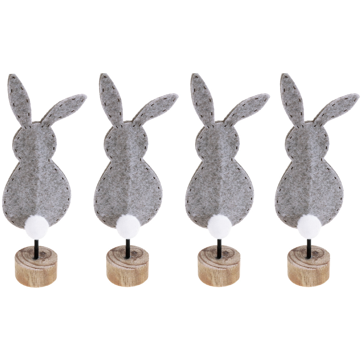 Aufsteller Tischdeko Osterhasen Deko Filz Grau 28,5cm 4 St