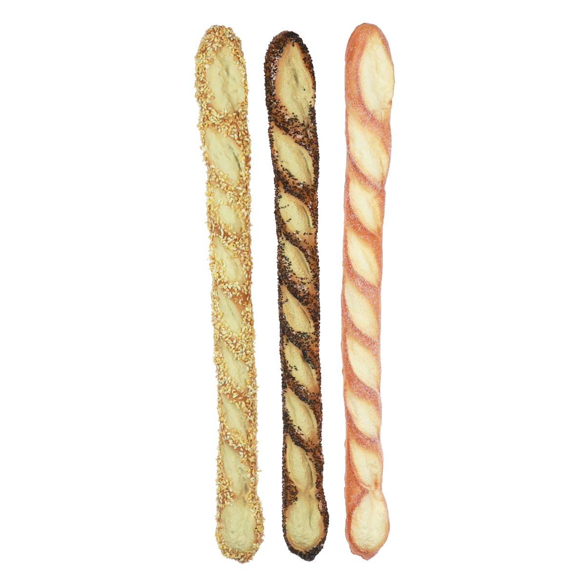 Baguette Lebensmittelattrappen 45cm, Bäckerei Dekoration, Täuschend echt, 3er Set Sortiert