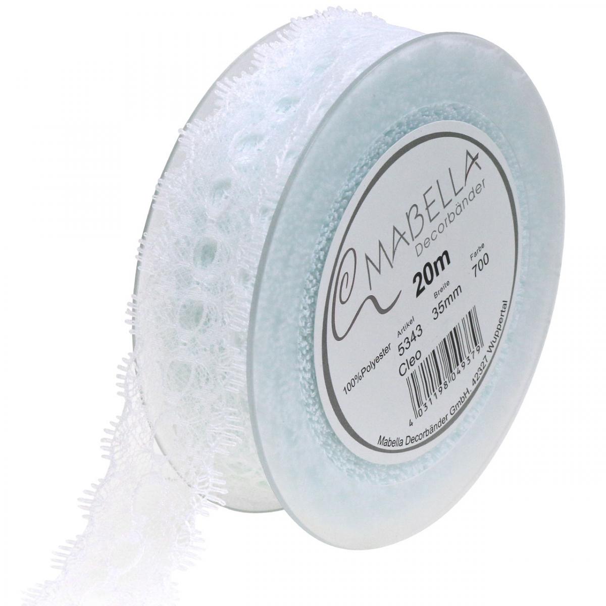 Produktname: Band mit Spitze, Hochzeitsdeko, Dekoband Weiß B35mm L20m