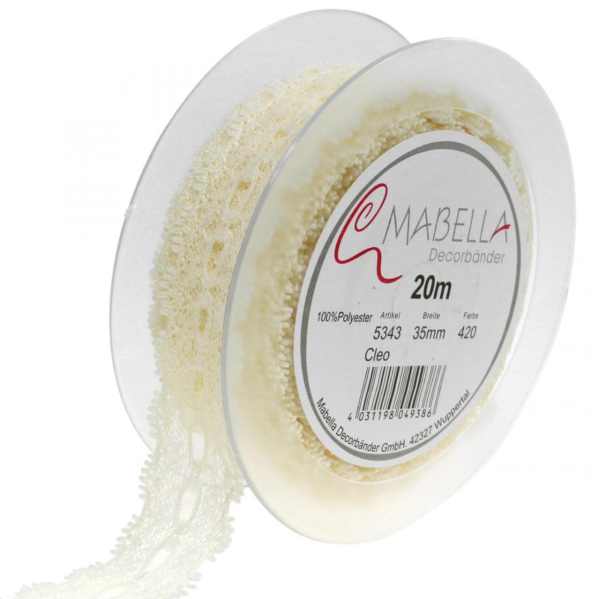 Produktname: Band aus Spitze, Hochzeitsdeko, romantisches Dekoband Cremeweiß B35mm L20m