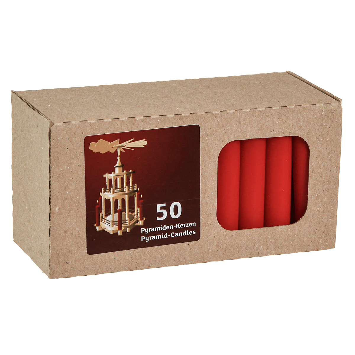 Produktname: Pyramidenkerzen Rot Baumkerzen Wachs Ø14mm H70mm 50St