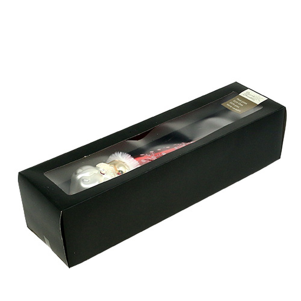 Die Baumspitze, die als Figur einen Weihnachtsmann in Rot zeigt, ist sorgfältig und sicher in einer Box verpackt. Die Gesamtlänge des Tannenbaumschmuckes beträgt in etwa 30 Zentimetern, wobei der Durchmesser circa 8 Zentimeter beträgt. Die Öffnung hat dabei einen Durchmesser von ungefähr 2,5 Zentimetern.