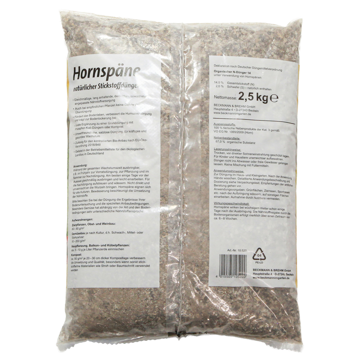 Produktname: Beckmann Hornspäne 2,5kg Stickstoffdünger