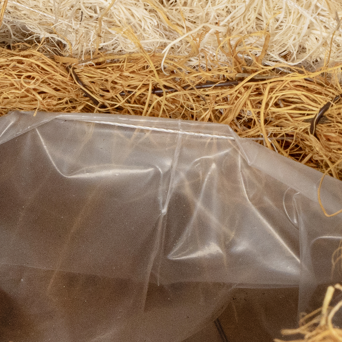 Scharfe oder abstehende Fasern vorsichtig handhaben.