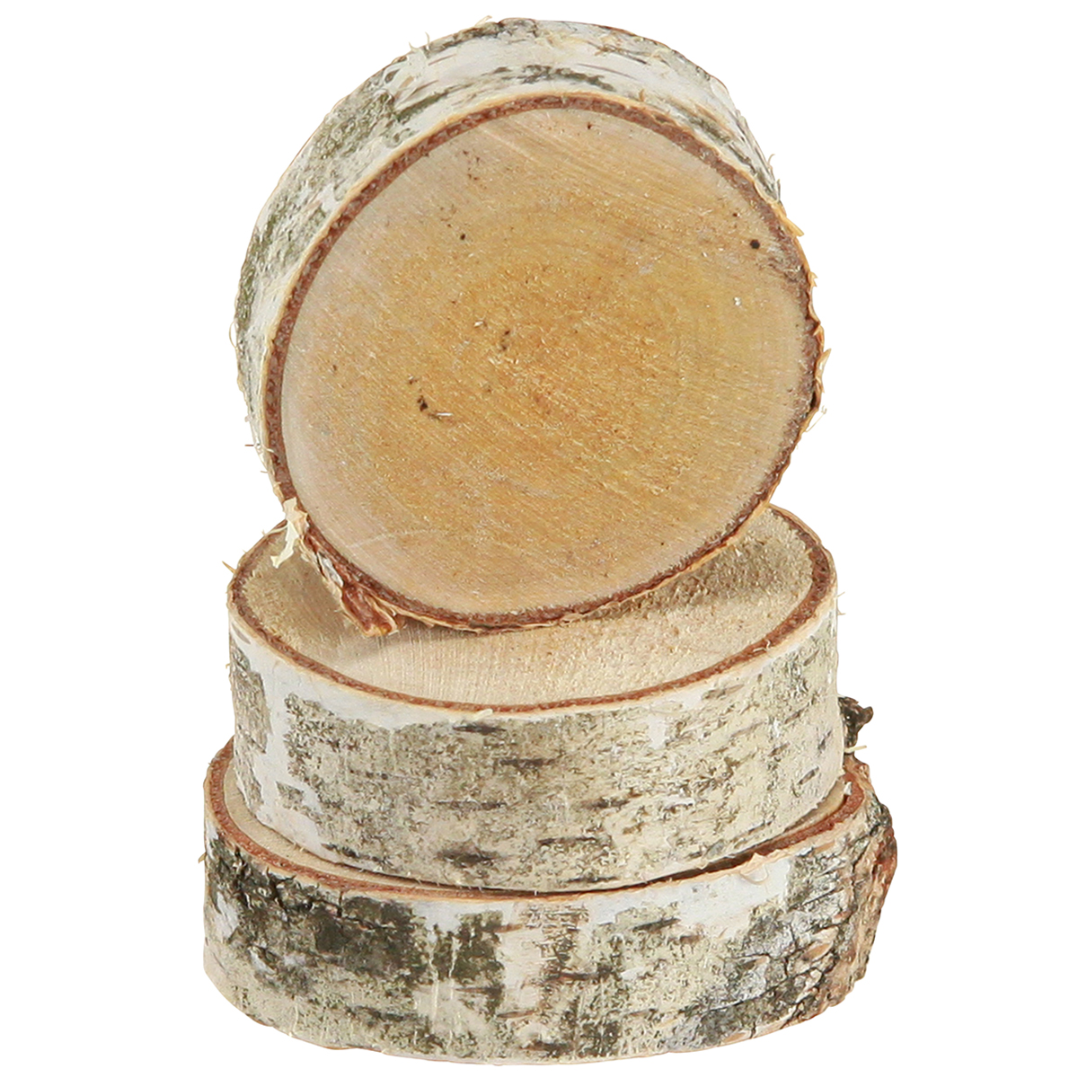 Produktname: Birkenscheiben mit Rinde 24 Stk, Ø5-6cm, Geweißt, Deko-Bastelmaterial für Hochzeiten, DIY-Projekte