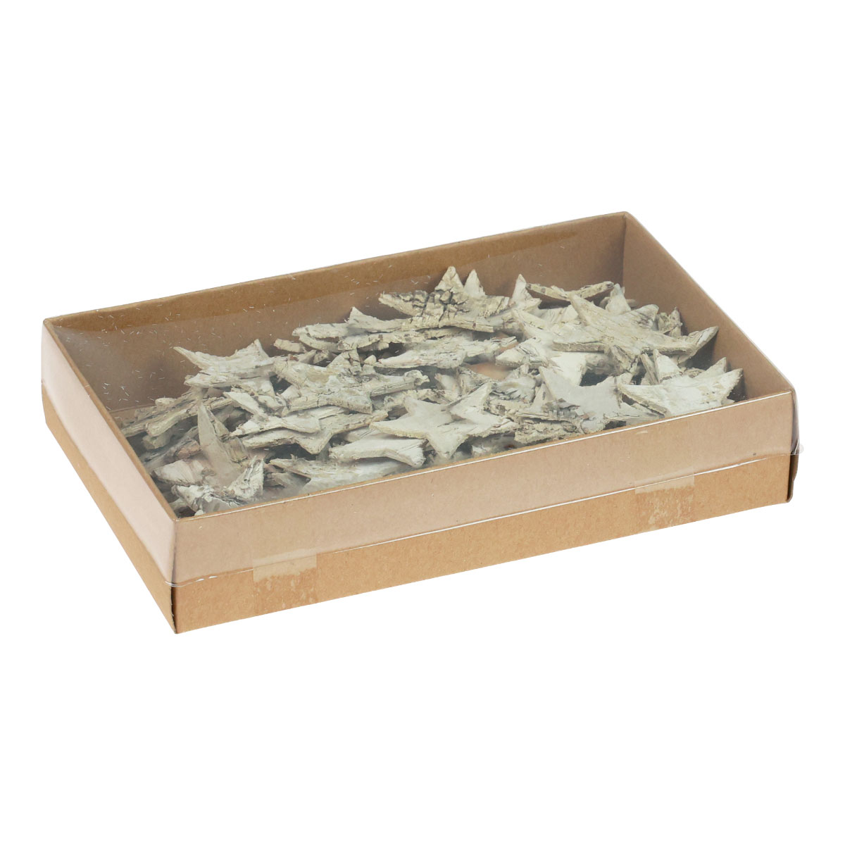 Der Stern aus Birkenrinde wird als Streudeko für Weihnachten in einer Box zu insgesamt 100 Stück geliefert. Jeder Holzstern hat in etwa eine Größe von etwa 4 Zentimetern.