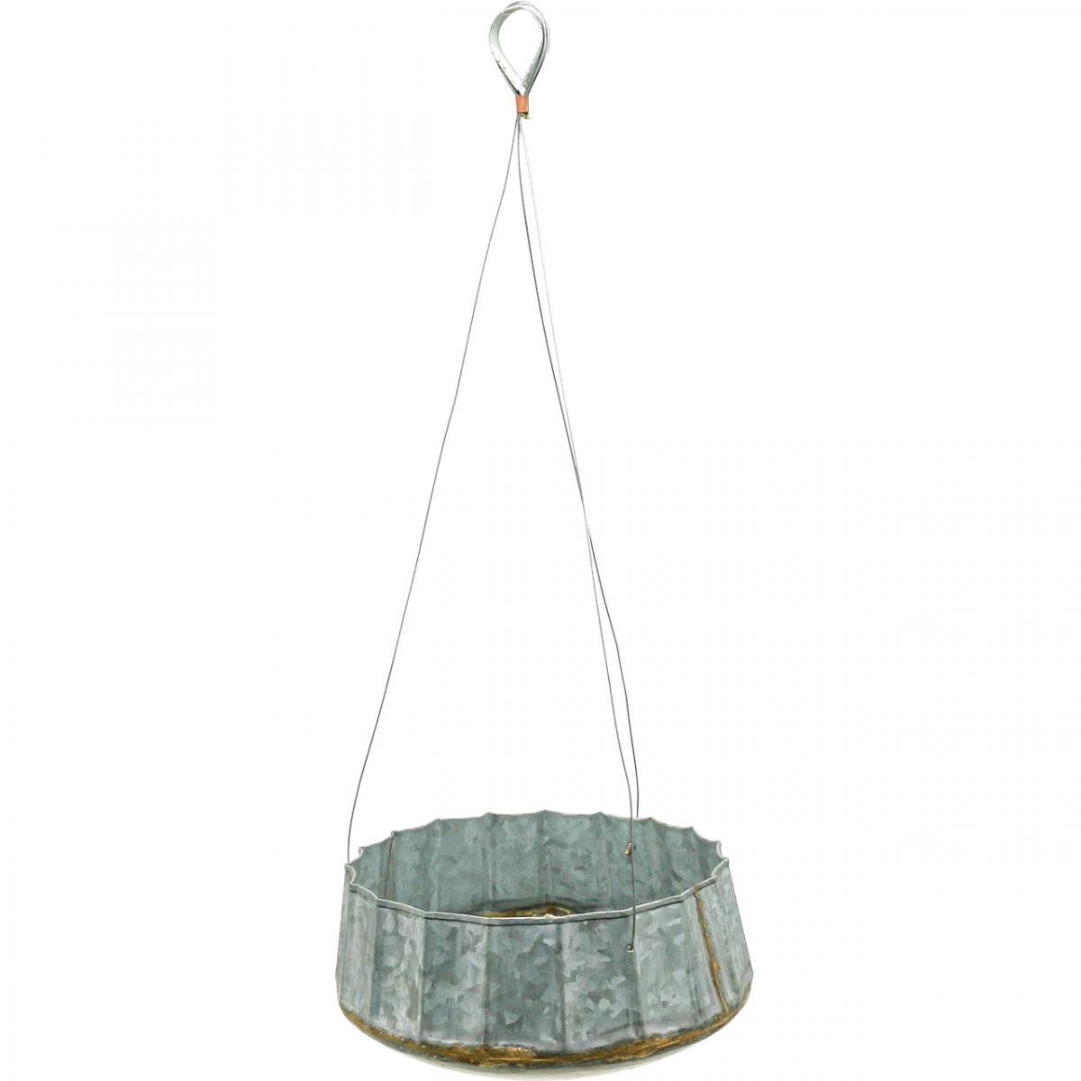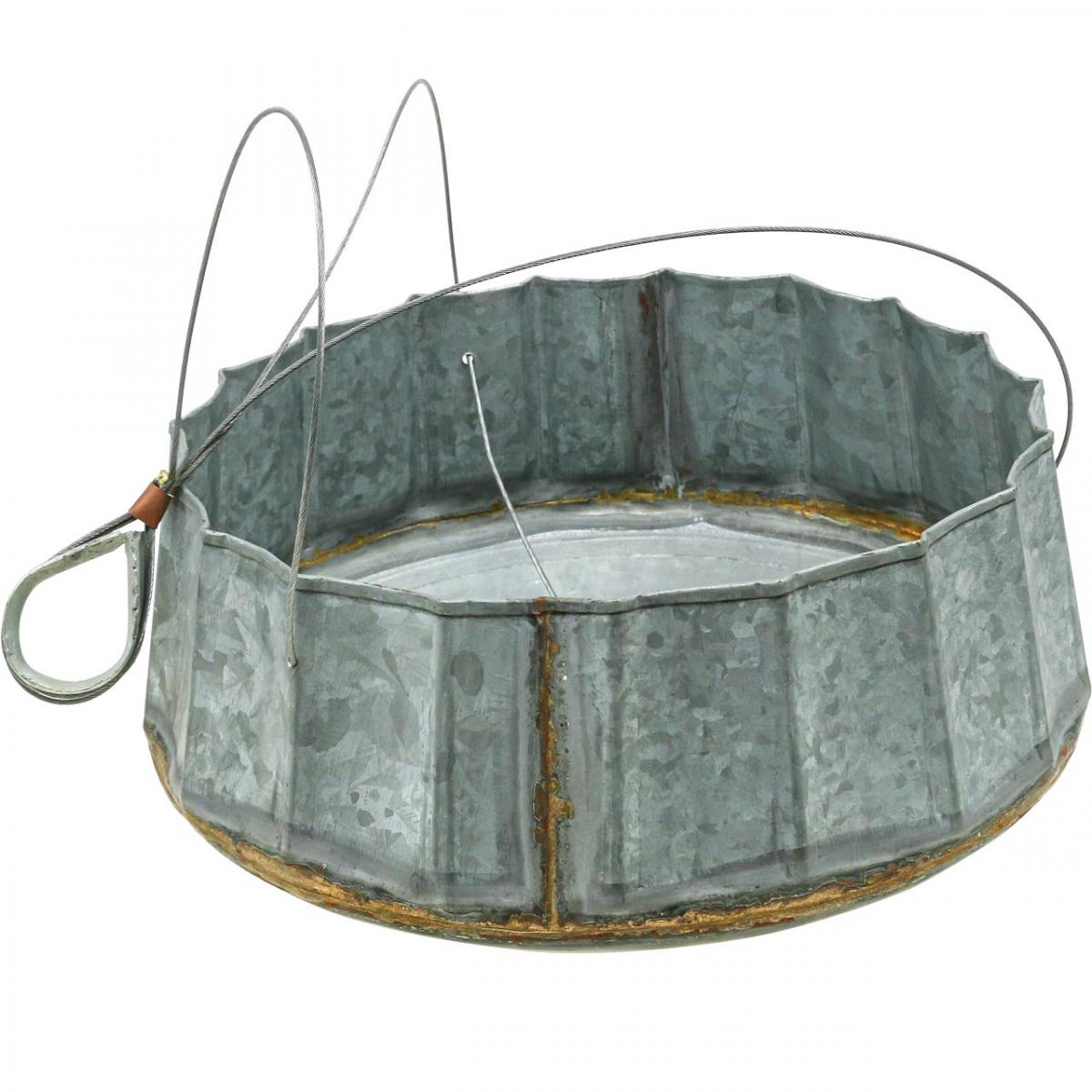 Produktname: Blumenampel Metall Deko Schale Zink Antik Ø25,5cm H8,5cm