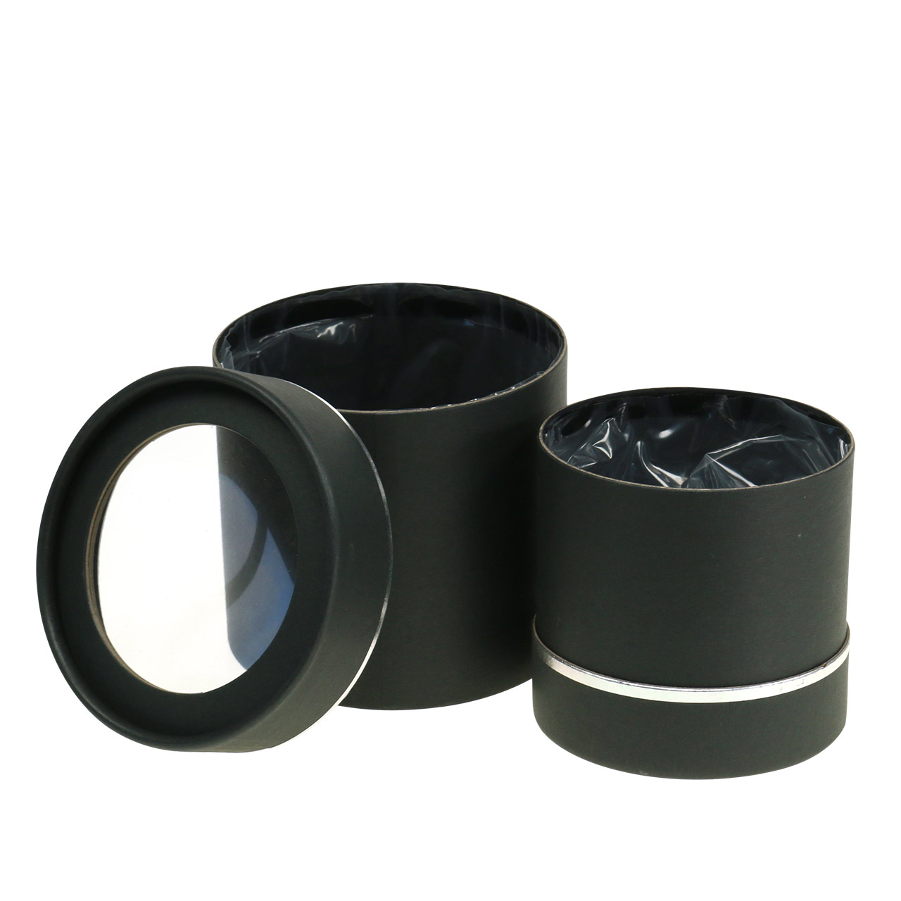 Produktname: Blumenbox rund Karton Schwarz, Silber Ø10/12cm 2er Set