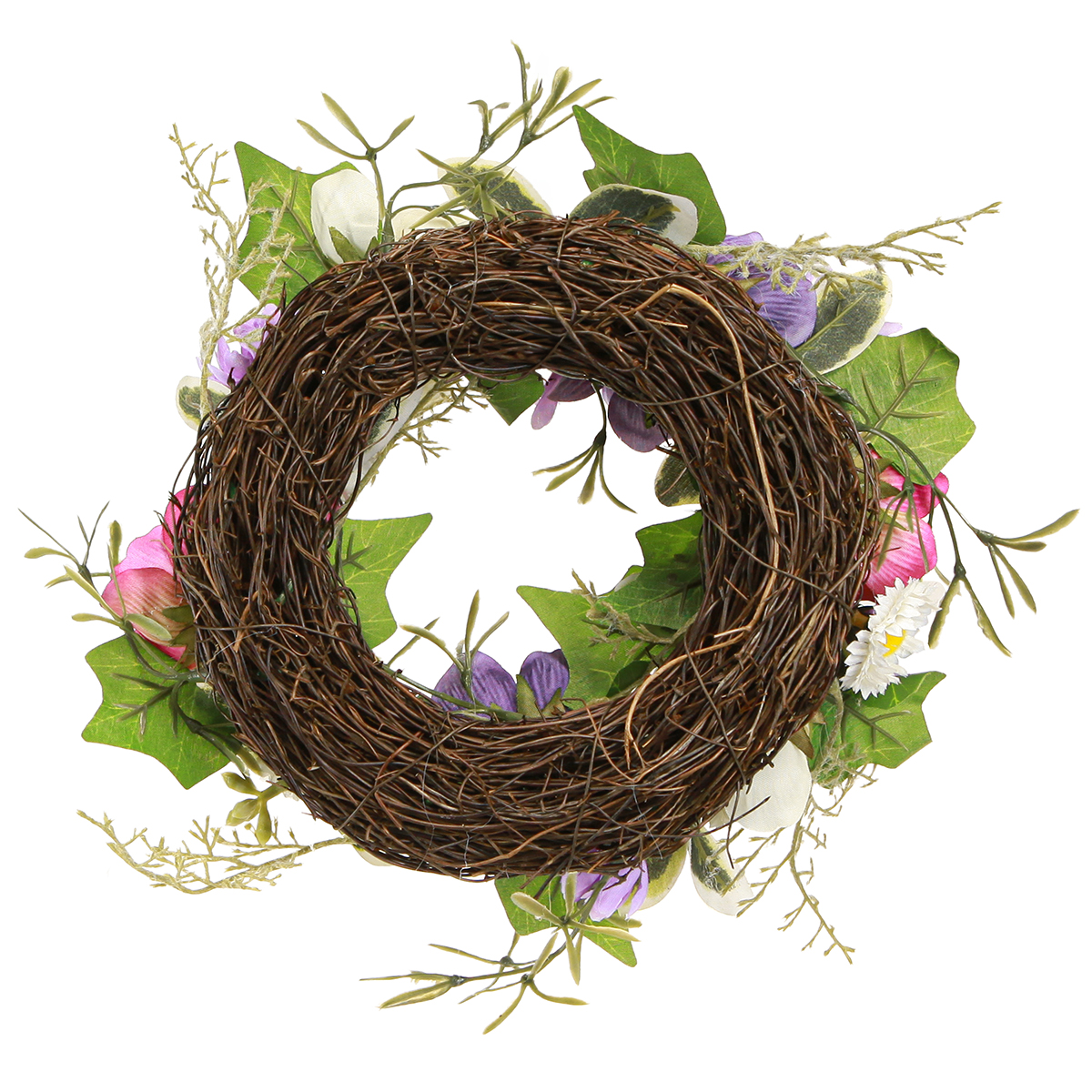 Verleihen Sie Ihrem Zuhause ein unverwechselbares Ambiente mit dem kunstvollen künstlichen Blumenkranz in Lila und Weiß! Dieser zauberhafte Kranz besticht durch die harmonische Kombination von Anemonen (Anemone coronaria) und Margeriten, die gemeinsam ein fröhliches und gleichzeitig elegantes Bild schaffen. Mit einem Durchmesser von etwa 25 cm eignet sich dieser Blumenkranz aus Kunstblumen ideal als vielseitiges Dekorationselement für verschiedene Anlässe. Gefertigt auf einem echten Rebenkranz, vermittelt er eine natürliche Optik und ist zugleich sehr pflegeleicht. Diese frühlingshafte Kreation fügt sich mühelos in verschiedene Wohnstile ein und eignet sich perfekt sowohl als Türkranz als auch als Tischdeko für besondere Anlässe wie Ostern, Frühlingsfeste oder auch zur dauerhaften Verschönerung Ihrer Wohn- und Büroräume. Der leicht romantische, skandinavische Look des Kranzes lässt sich hervorragend mit verschiedenen saisonalen Deko-Elementen kombinieren und setzt stilvolle Akzente in jeder Umgebung.
