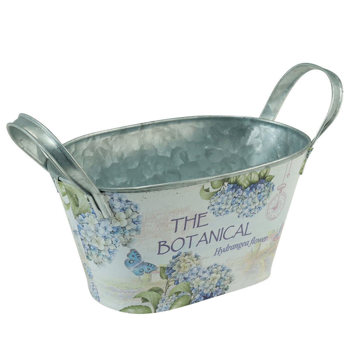 Produktname: Blumenschale mit Griffen Hortensien Metall 26×13×14,5cm