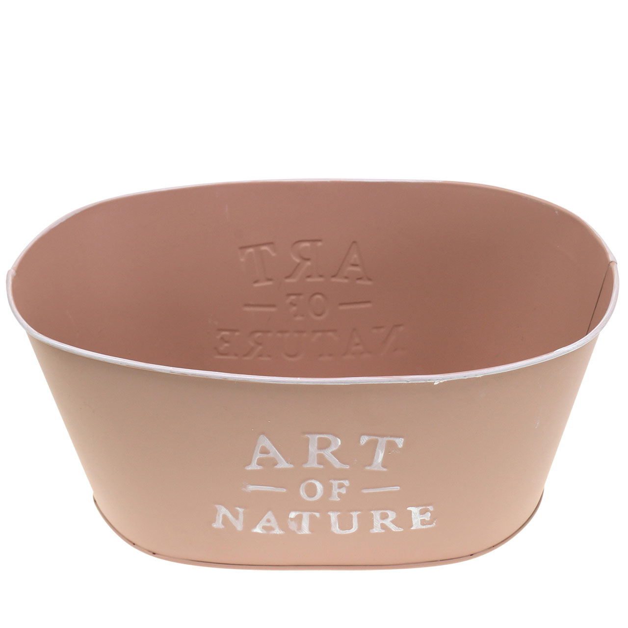 Die altrosa Blumenschale von VIANA versprüht eine unwiderstehliche Vintage-Ästhetik, die in jedem Ambiente einen Hauch von Charme und Eleganz verleiht. Der weiße, geprägte Schriftzug "Art of Nature" hebt sich stilvoll vom zarten Altrosa ab und unterstreicht den einzigartigen Charakter dieser Metalldeko. Aus robustem Metall gefertigt, eignet sich die Schale perfekt als Übertopf oder Pflanzgefäß für Ihre botanischen Schätze.