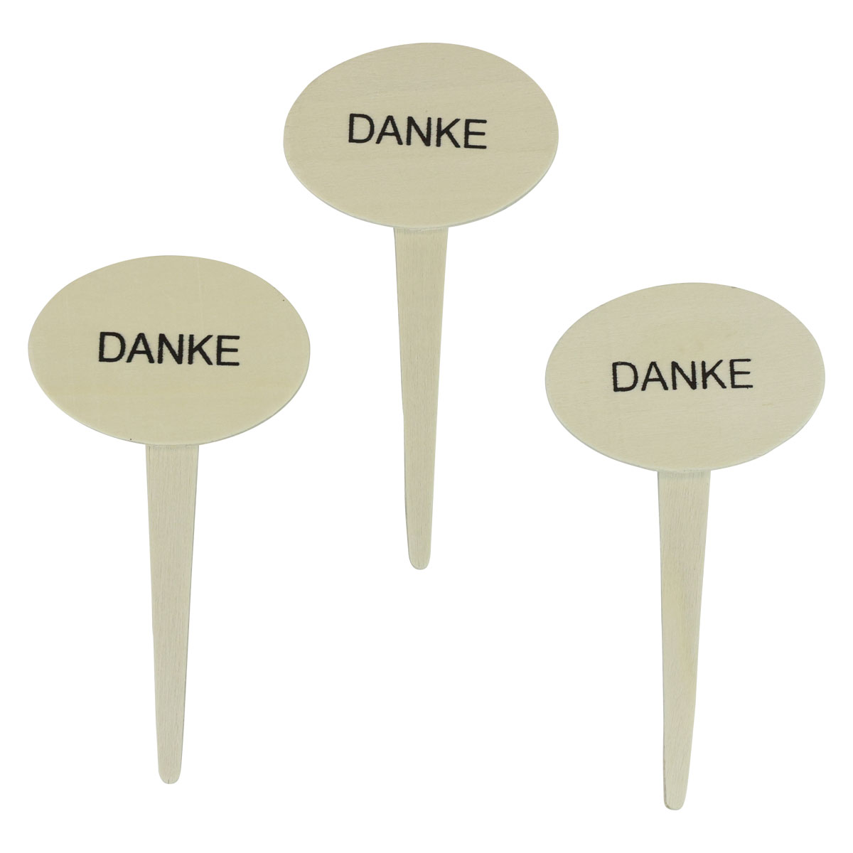 Blumenstecker Danke Dekostecker Holz Natur Oval 6x4cm 18 St
