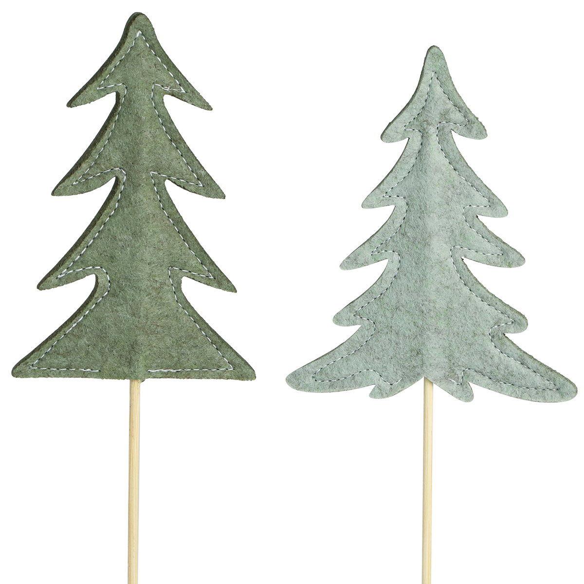 - 6 Blumenstecker mit Tannenbaum-Motiv aus weichem Filz