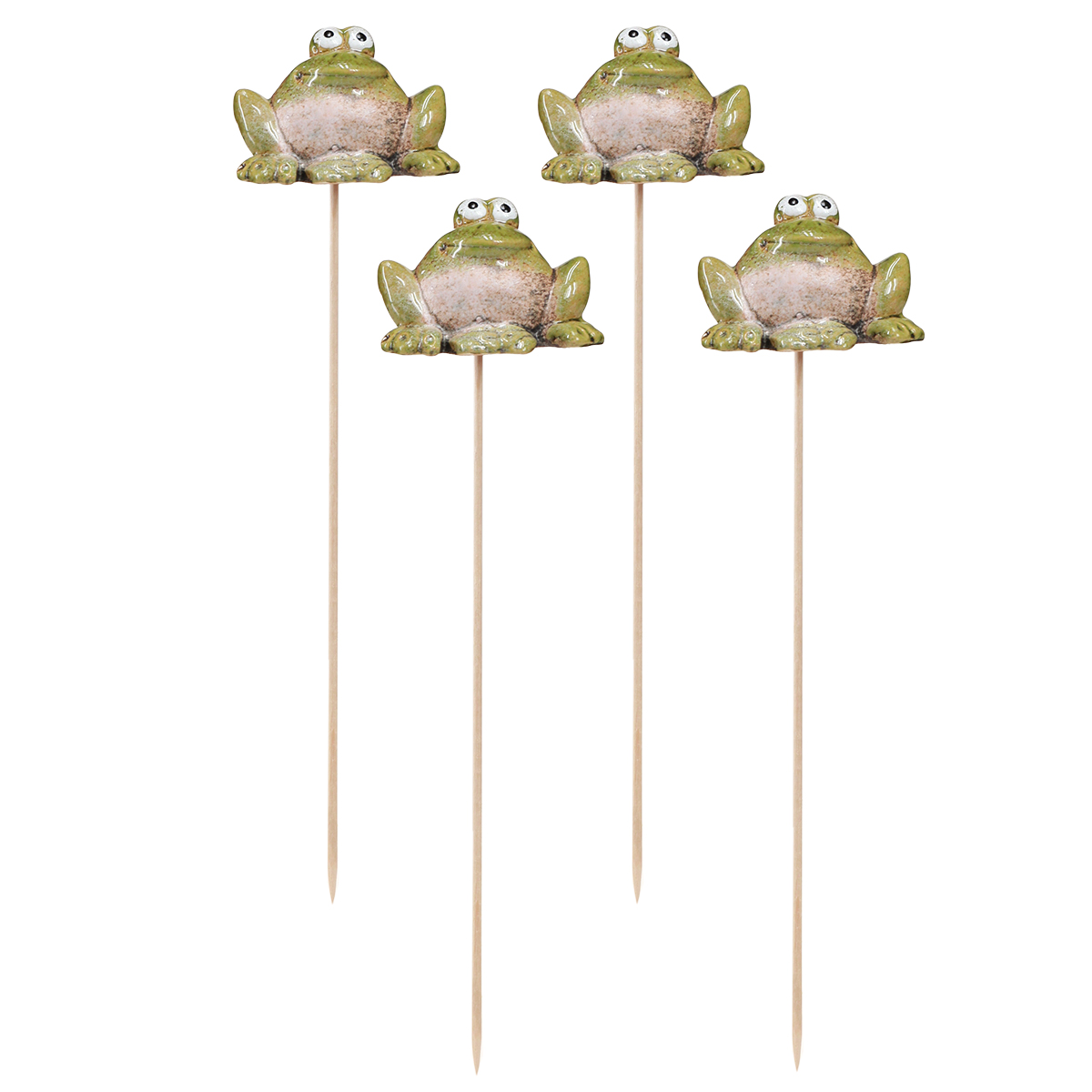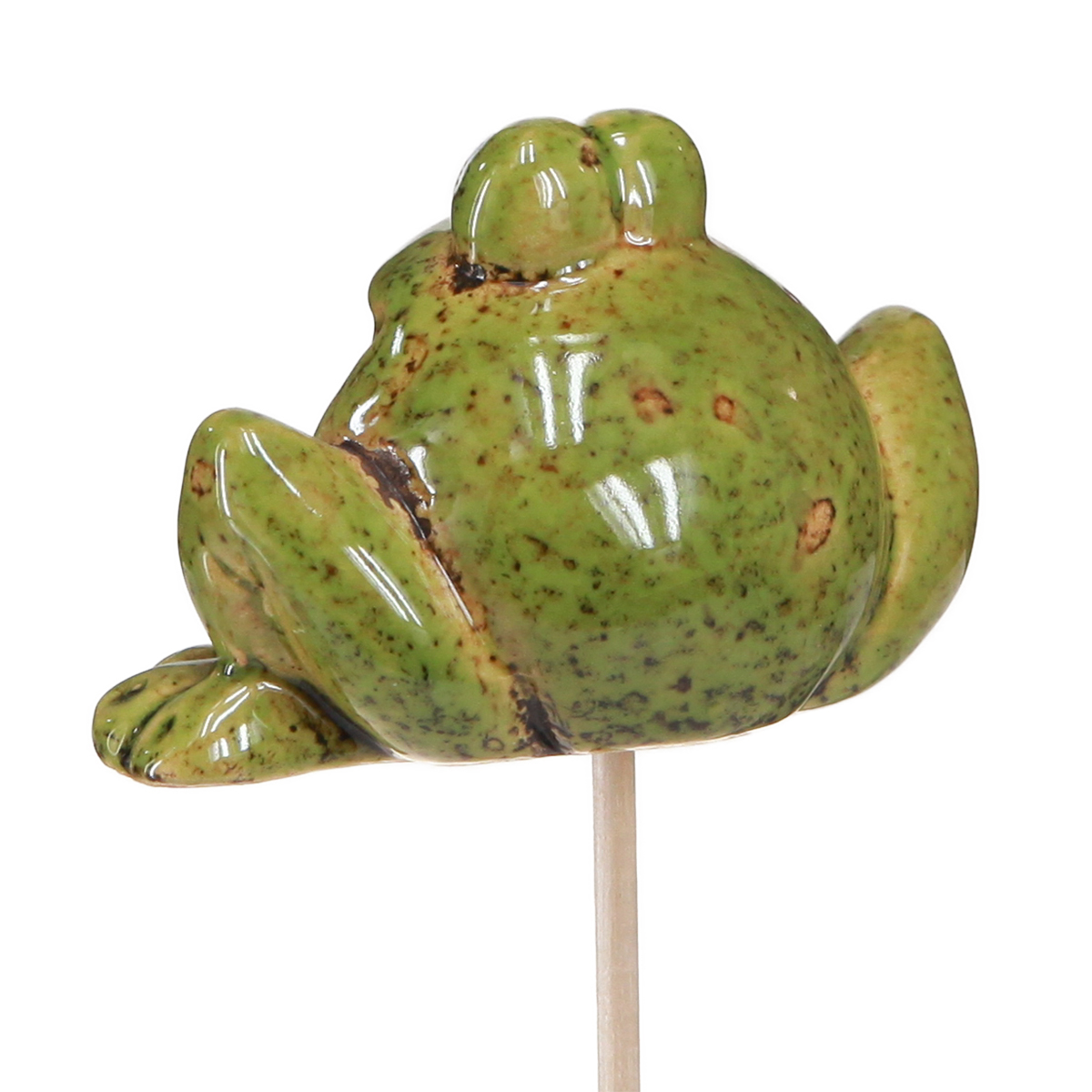 Blumenstecker Frosch Keramik Grün Braun 6x4x4,5cm 4 St