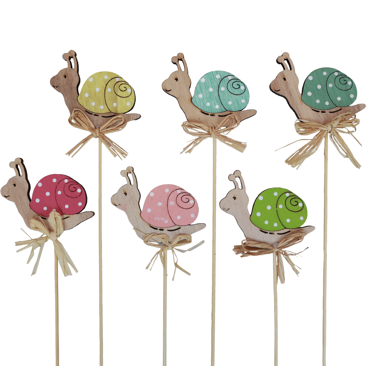 Blumenstecker Holz Deko Schnecken Bunt 8,5×8cm 12 St