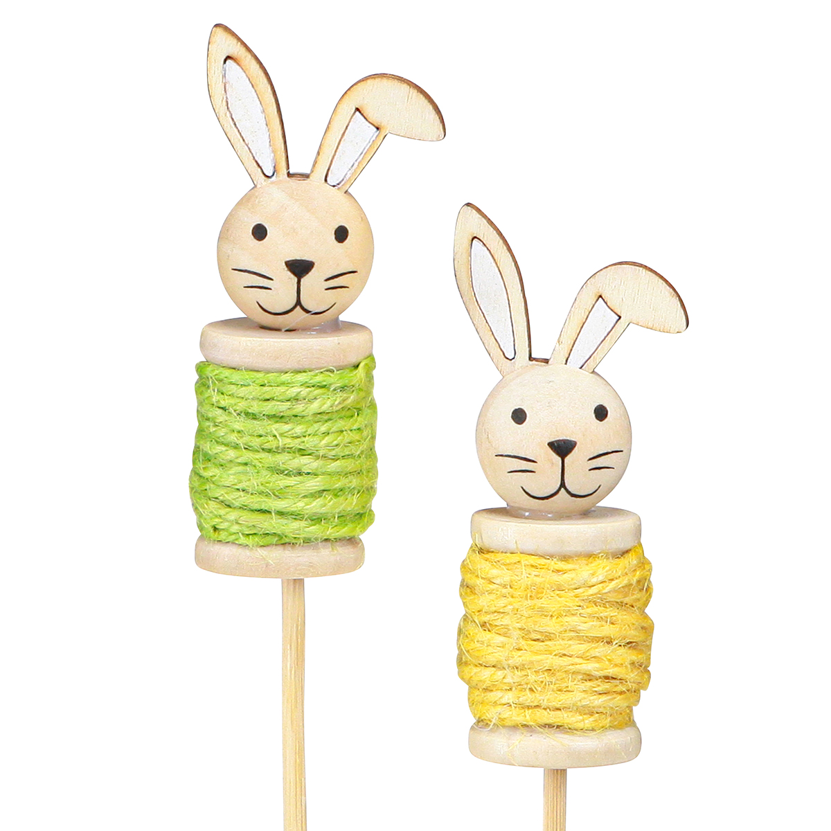 Produktname: Blumenstecker Holz Ostern Osterhase Grün Gelb L32cm 8 St