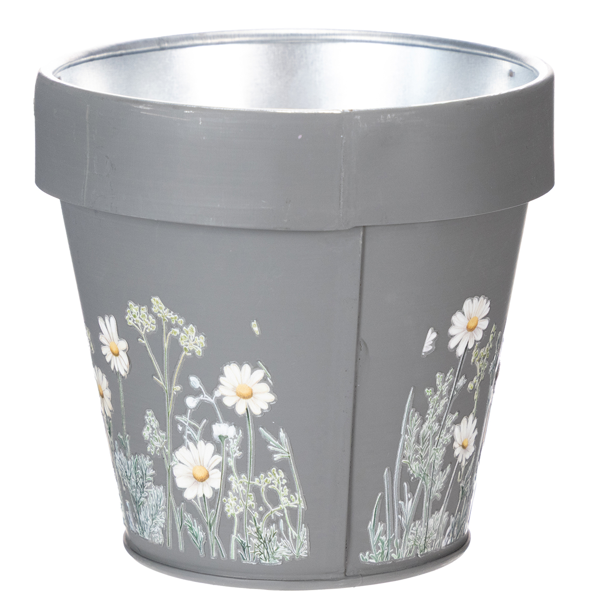 Dieser dekorative Blumentopf mit Gänseblümchen-Motiv bringt frischen Wind in Ihre Innenraumgestaltung. Egal ob auf der Fensterbank, im Wohnzimmerregal oder auf dem Schreibtisch – mit seinem dezenten Design in Grau fügt er sich harmonisch in jede Umgebung ein. Das liebevolle Blumenmotiv verleiht jedem Raum einen Hauch von Natur und Lebensfreude. Vier Stück in einem Set – da können Sie gleich mehrere Wohlfühloasen schaffen. Praktisch und leicht, aus robustem Metall gefertigt, ist dieser Blumentopf nicht nur schön, sondern auch erstaunlich vielseitig. Ein kleines Highlight, das Stil und Funktionalität vereint!