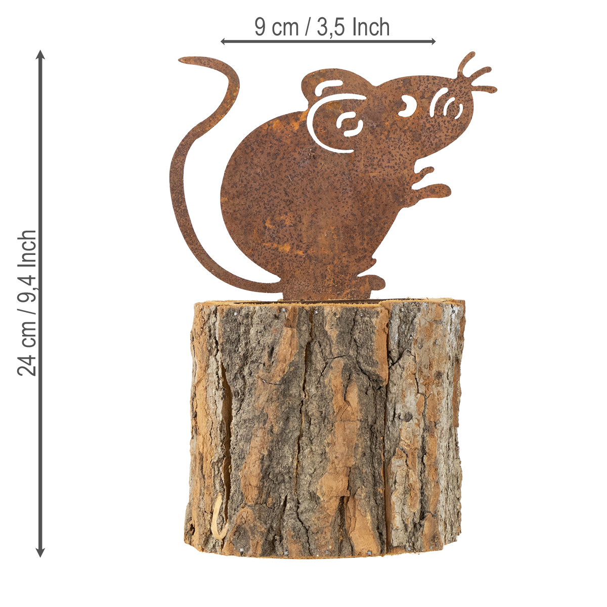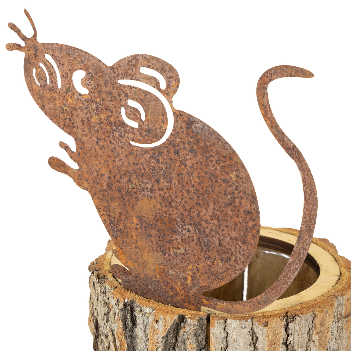 Produktname: Blumentopf Holz Übertopf Rinde und Maus Edelrost H24cm
