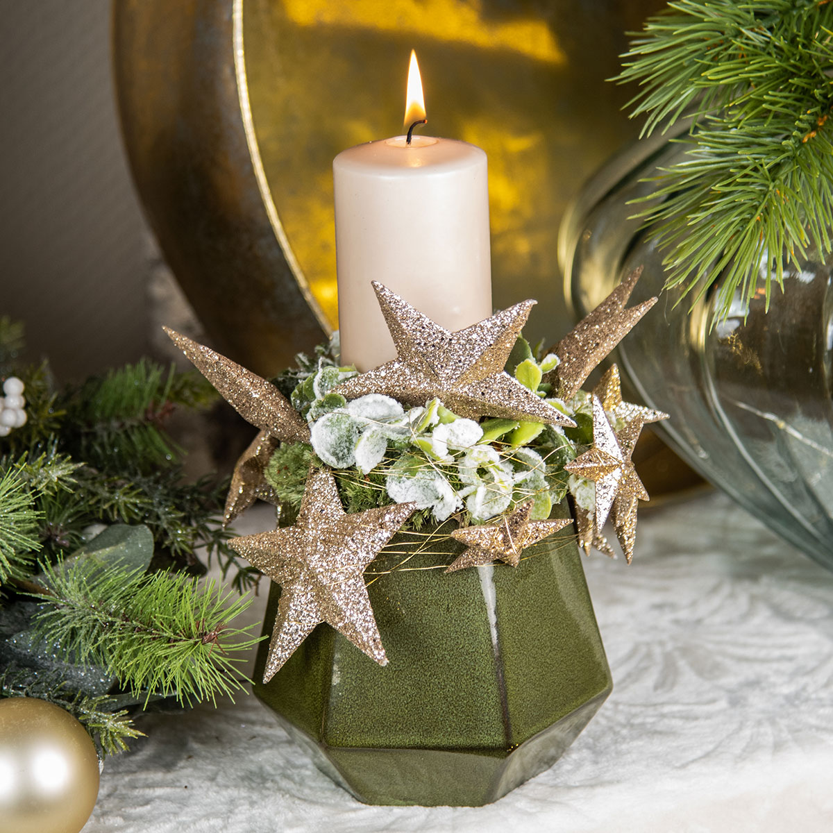 Produktname: Blumentopf Keramik Übertopf Grün Sechseckig Ø10cm H9cm