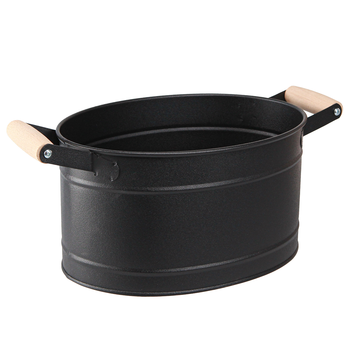 Blumentopf Metall Oval Griff Schwarz Natur 34x19,5x15cm