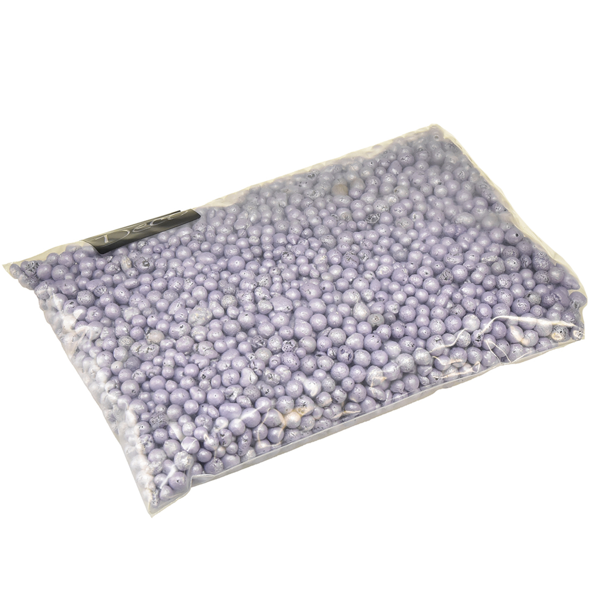 Die Kunststoff-Tüte, in der Sie die lilafarbenen Brillant-Dekoperlen erhalten, verfügt über eine Füllmenge von 1 Liter, wobei die Granulatperlen ungefähr zwischen 4 und 8 Millimeter groß sind.