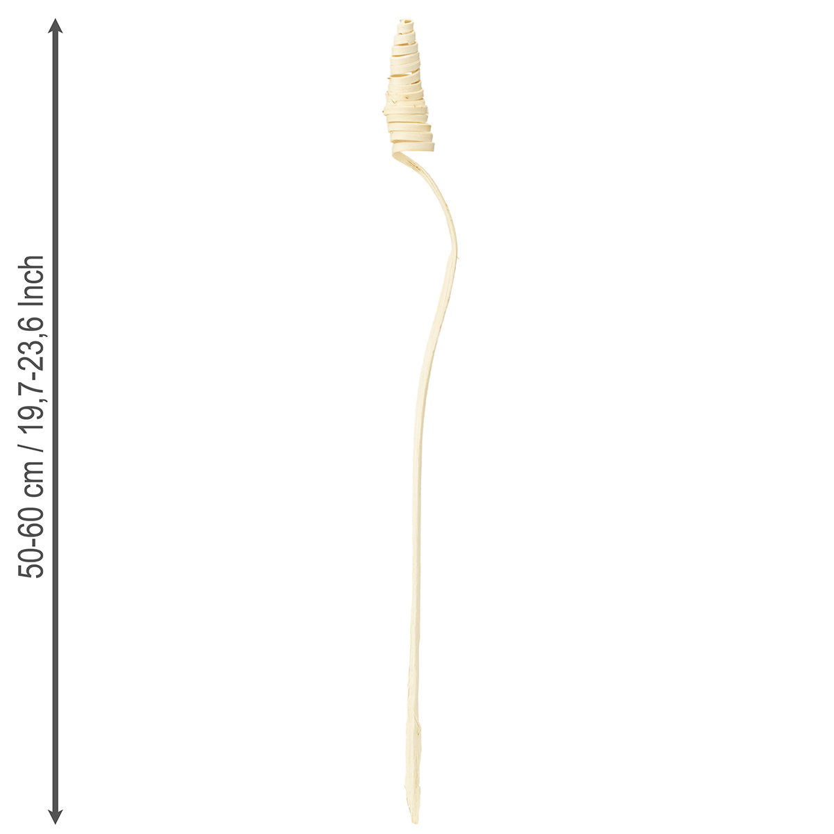 Die Cane Cone Holzspiralen sind für eine edle Optik gebleicht und werden in einem Set zu insgesamt 25 Stück geliefert. Da es sich um Naturprodukte handelt, können die Stiellängen variieren. So sind die Holzstäbe etwa zwischen 50 und 60 Zentimetern lang.