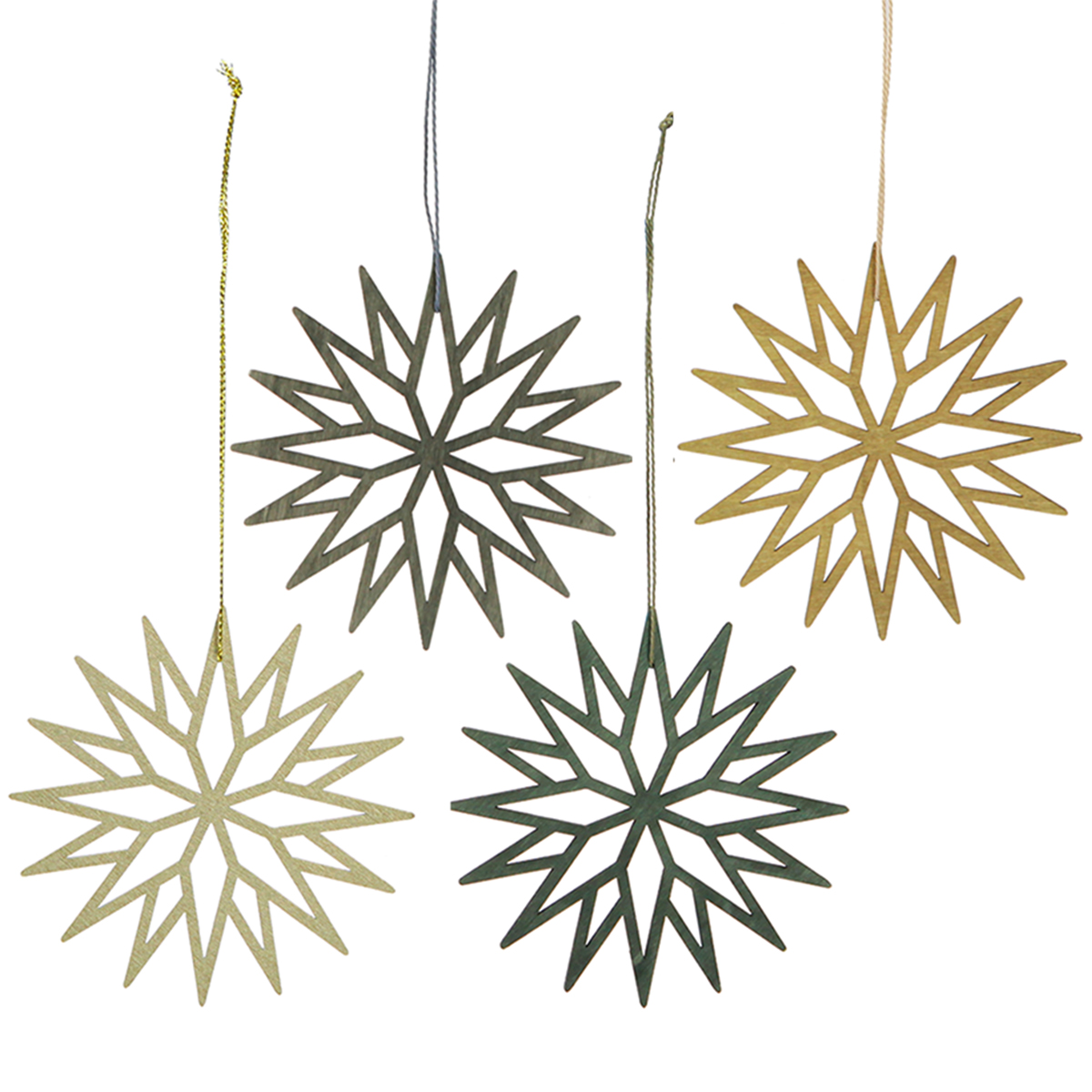 Christbaumschmuck aus Holz – Schneeflocken in Grün: Eleganz und natürlicher Stil