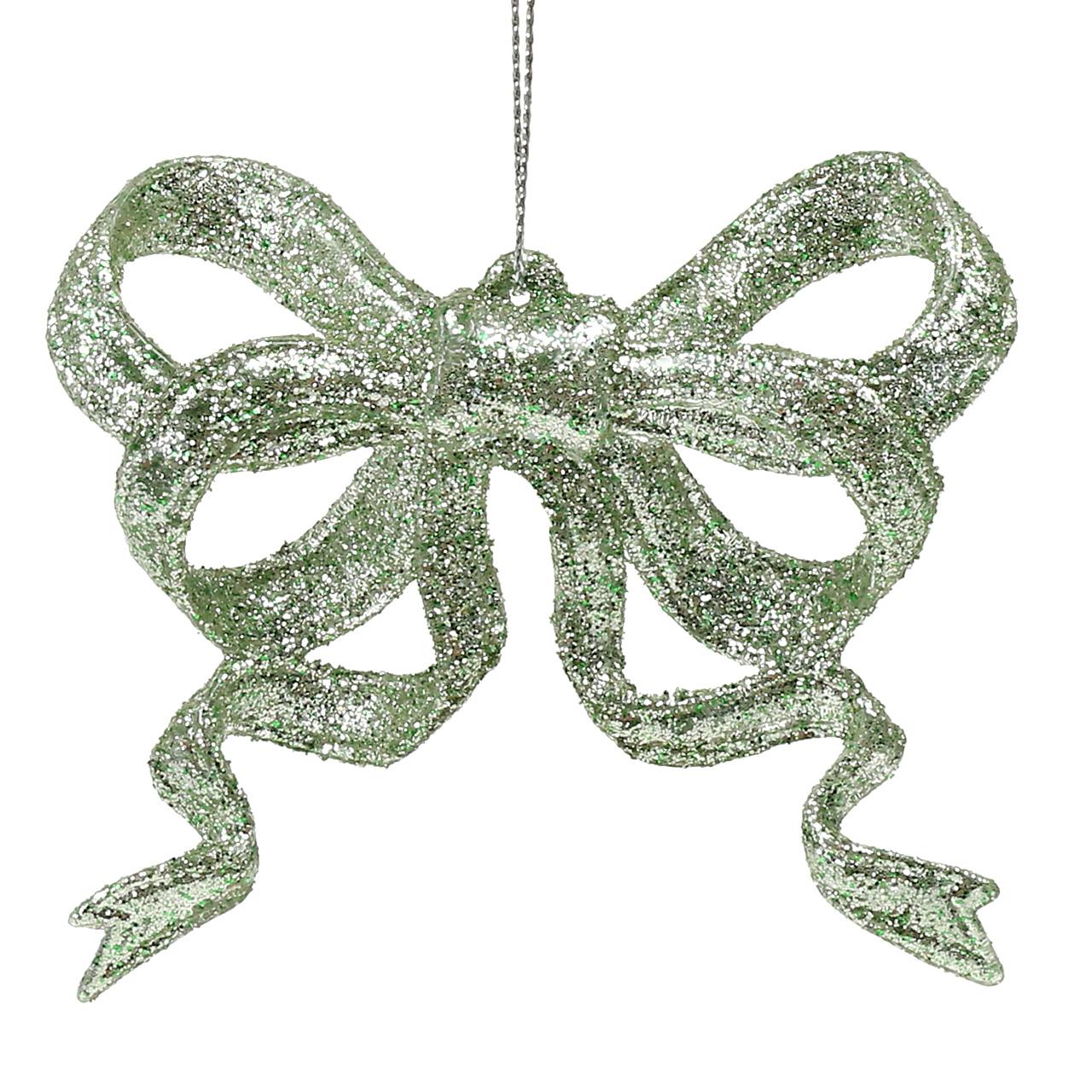 Christbaumschmuck Schleife 9cm mit Glitter Grün 12 St