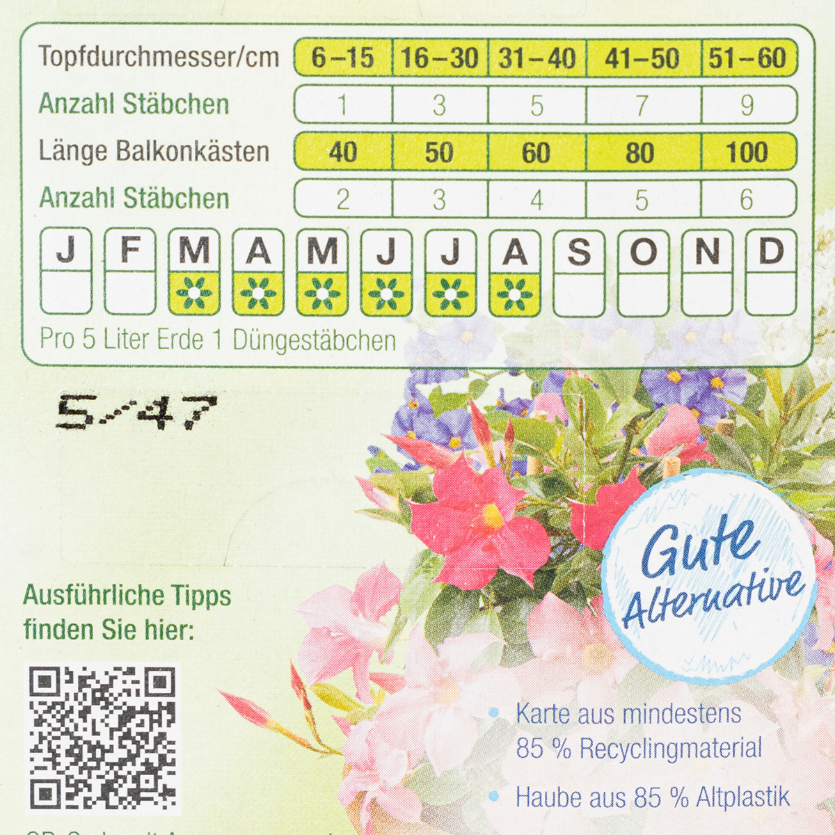 Zudem punktet das Produkt durch seine Nachhaltigkeit: Die praktische Langzeitwirkung der Düngestäbchen sorgt für eine gleichmäßige Nährstoffzufuhr, wodurch Überdüngung vermieden wird. Besonders praktisch für Kübel- und Innentopfpflanzen!