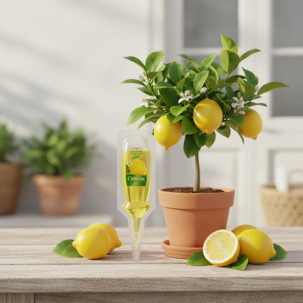 Träumen Sie von kräftigen, gesunden Zitruspflanzen, die Ihren Balkon, Garten oder Ihre Wohnräume verschönern? Mit der Chrysal Zitruspflanzen-Vitalkur als gebrauchsfertigem Flüssigdünger können Sie Ihre Pflanzen optimal versorgen. Die praktische 30-ml-Vitalkur liefert Ihren Zitruspflanzen genau die Nährstoffe, die sie für ein gesundes Wachstum und eine verbesserte Fruchtbildung brauchen. Ob für Ihre Zitronenbäumchen auf dem Balkon oder Orangenbäume im Wintergarten – mit diesem Flüssigdünger legen Sie die Basis für kräftige Pflanzen und eine Umgebung voller Lebendigkeit.