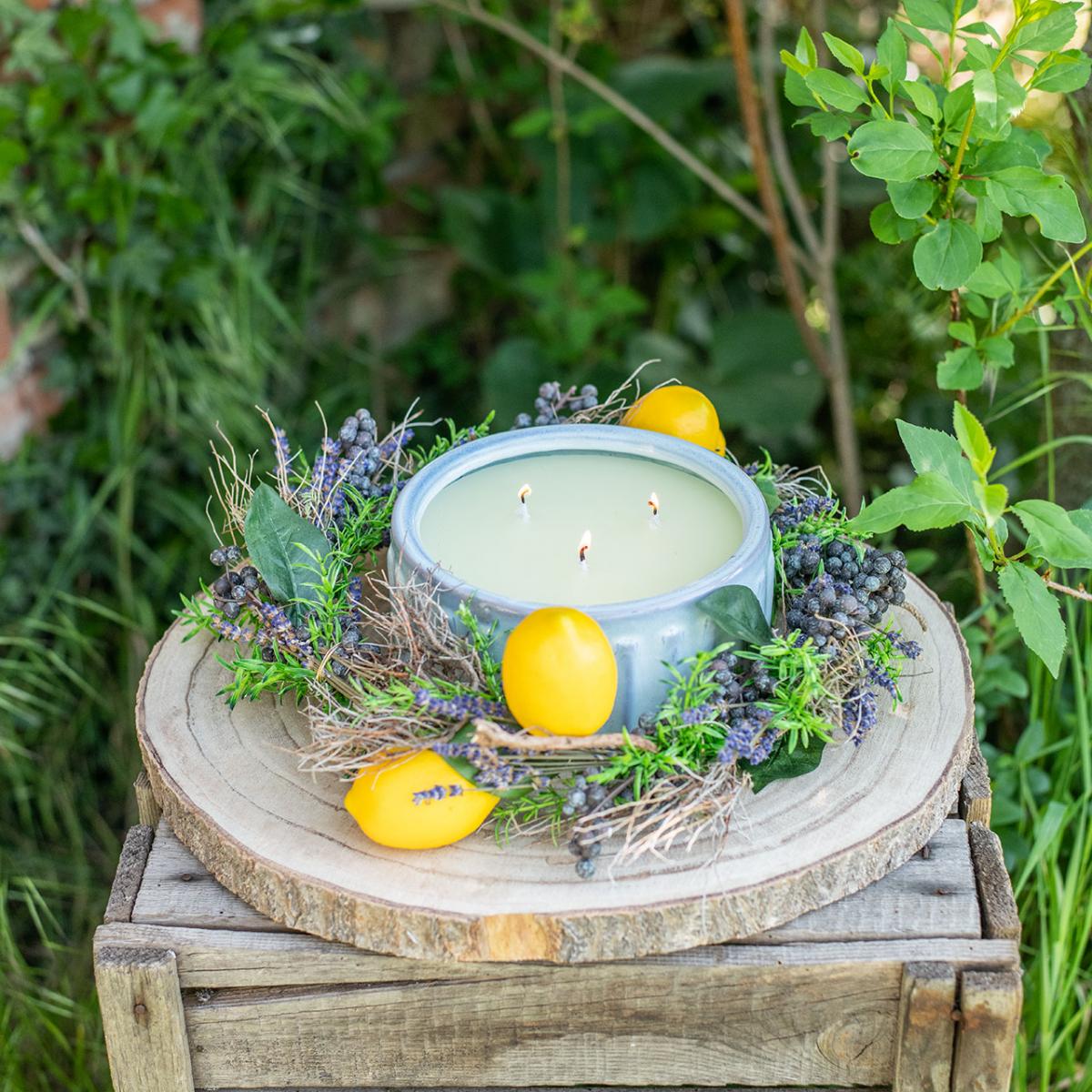 Die Citronella-Kerze im Topf ist eine Duftkerze mit Zitronenduft, die gleichzeitig für gemütliche Beleuchtung und sommerlichen Duft sorgt.