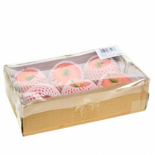Sie erhalten den künstlichen Apfel in Rot und Gelb in einem Schaumstoffnetz aus weißem Kunststoff für den Transport geschützt, ganz wie erstklassige Ware beim Obsthändler. Die Kunstfrucht hat eine ungefähre Größe von 5,5 Zentimetern. Einschließlich des grünen Stiels beträgt die Höhe circa 6,5 Zentimeter.