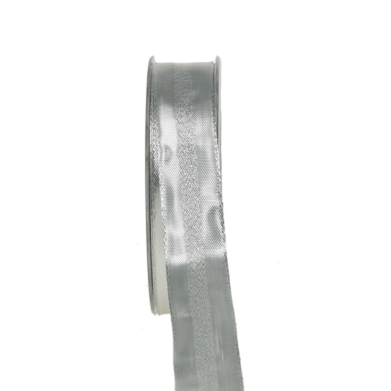 Produktname: Deko Band Silber mit Streifen 25mm 20m
