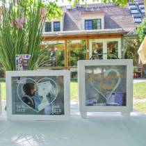 Der große Schriftzug von VIANA ist für die "Mrs", also die verheiratete Dame, mit einem glitzernden goldenen Krönchen ausgestattet, während die Deko-Buchstaben beim "Mr", dem Herrn, eine elegante Fliege tragen. Die weißen Buchstaben können Sie geschmackvoll in Ihre Hochzeitsdeko integrieren. Einander gegenübergestellt, macht sich die Holzdekoration wunderbar auf einem Gesteck zum Hochzeitstag, in der Tischdeko oder auf dem Ehrenplatz des Brautpaars. Aber nicht nur am schönsten Tag des Lebens selbst oder zum Hochzeitstag finden die Holzbuchstaben Verwendung: Als Dekoration im Schaufenster oder im Empfangsraum des Hochzeitsplaners oder einer Boutique für Brautmoden sorgen die stilvollen Holzlettern von Anfang an für die richtige Stimmung.