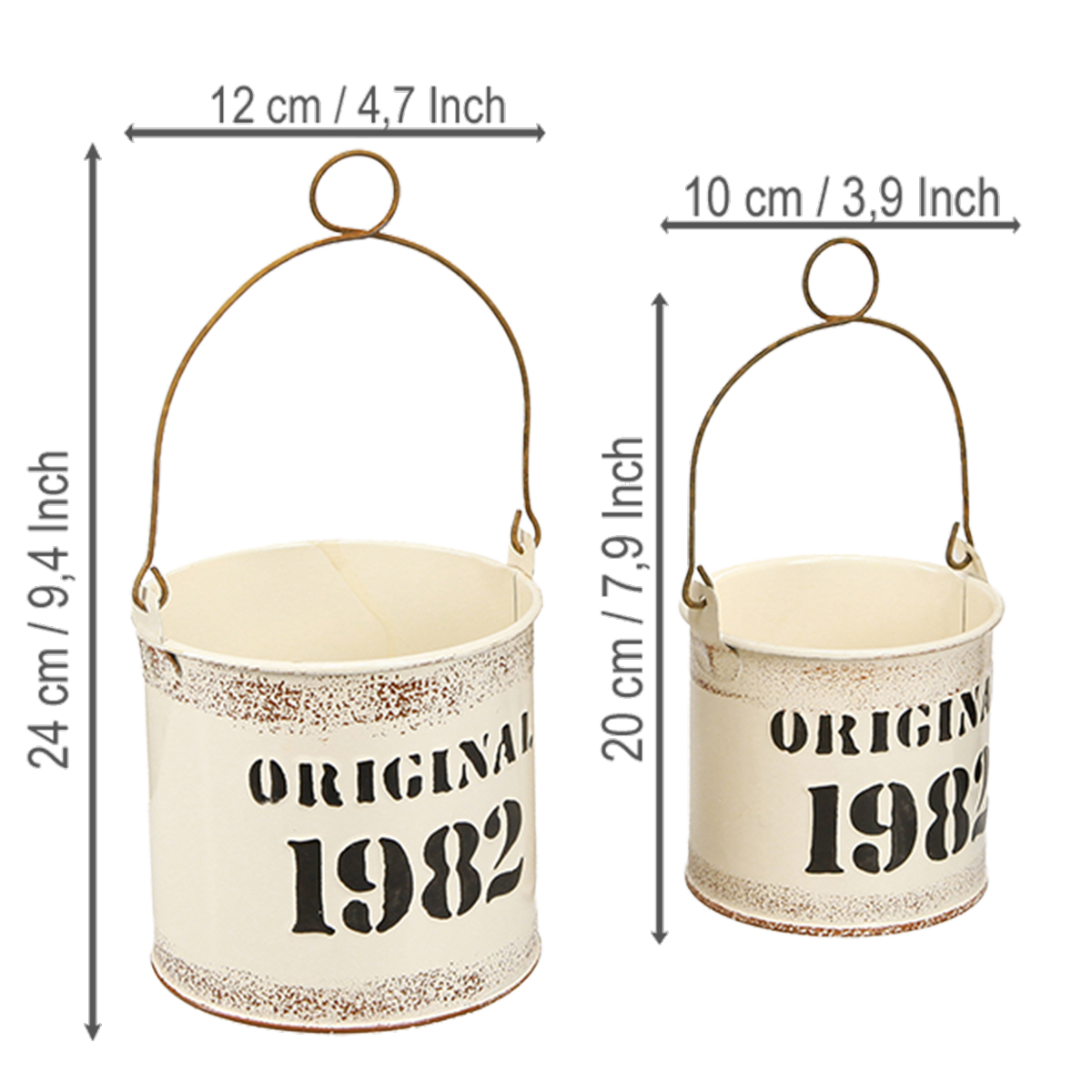 Deko Eimer Henkel „Original 1982“ Creme Ø12/10cm 2×2er-Set