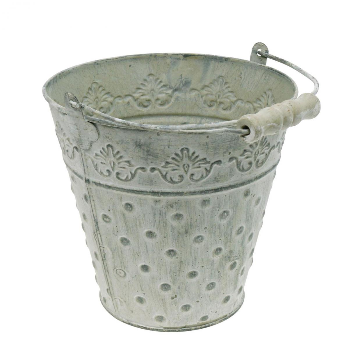 Produktname: Deko-Eimer Weiß gewaschen mit Henkel Ø20,5cm Pflanzkübel Metalldeko