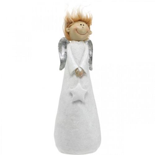 Deko Engel Figur Weihnachten mit Stern Weiß 10×8×28,5cm