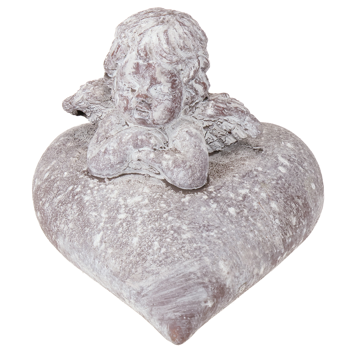 Produktname: Deko Engel auf Herz Figur aus Steinguss 15×13,5×12cm