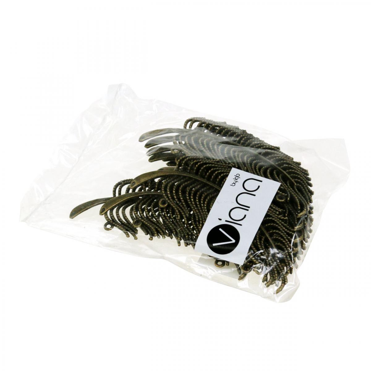 Produktname: Deko-Federn, Schmuckanhänger, Federn aus Metall, Streudeko Bronzefarben L8cm 10 St
