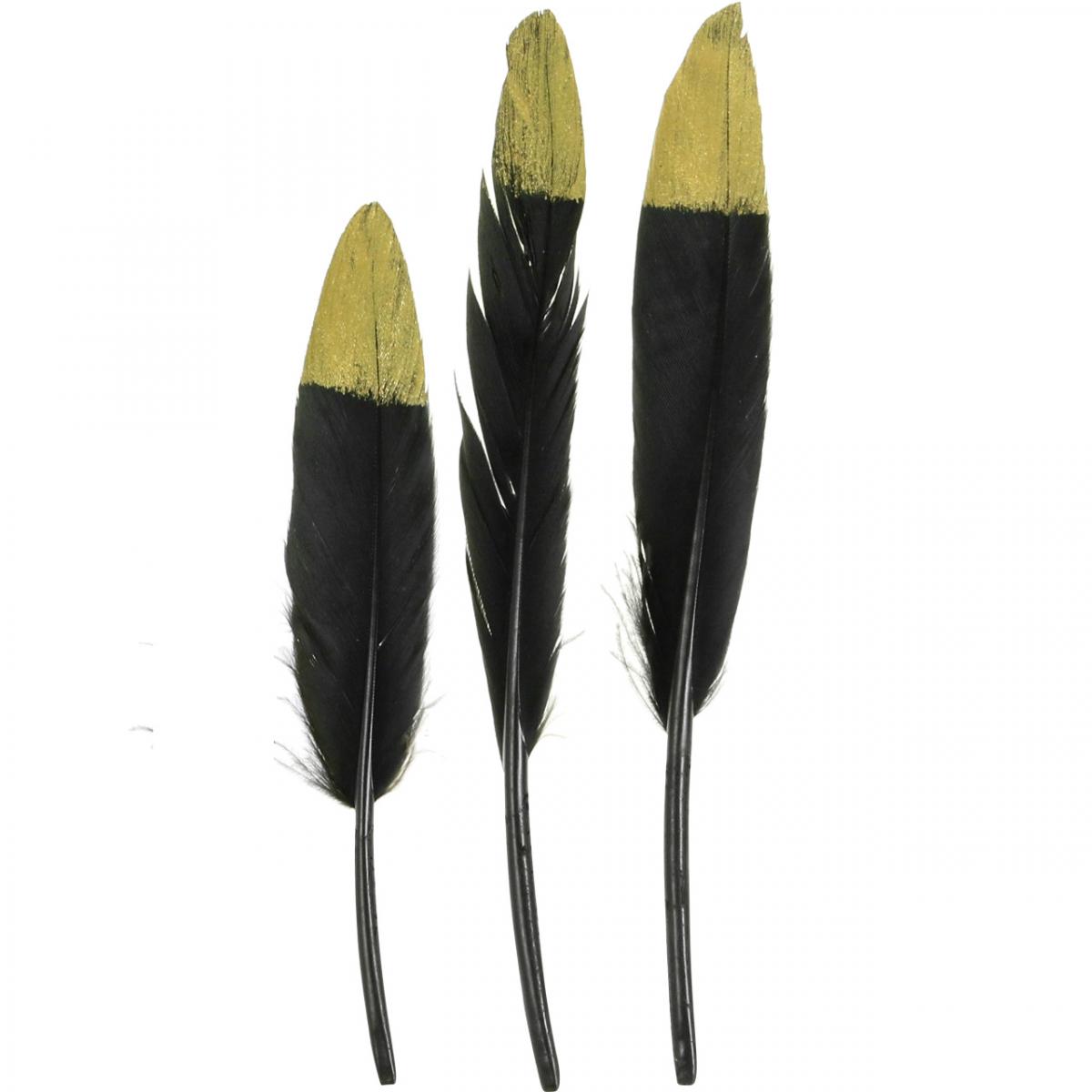 Produktname: Deko Federn Schwarz, Gold Echte Federn zum Basteln 12-14cm 72 St