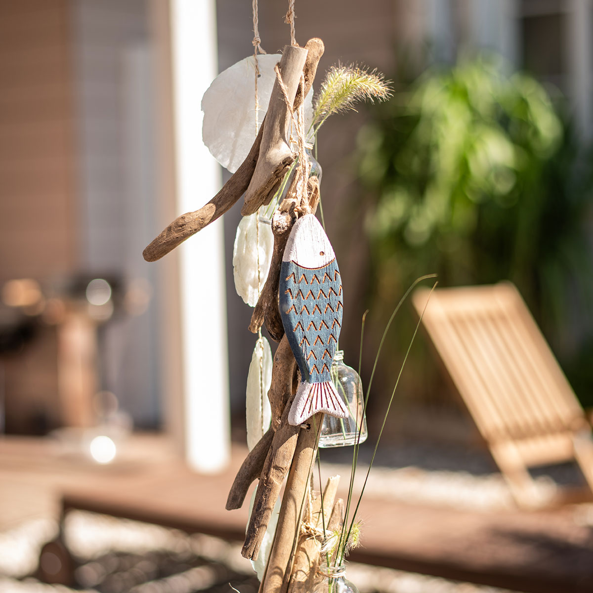 Die Deko-Fische sind am Kopf mit einer Aufhängung aus Jute versehen, sodass diese als Tür- oder Fensterdeko angebracht werden können. Holen Sie sich das unbeschwerte Gefühl vom Tag am Meer in Ihr Zuhause.